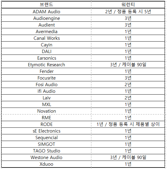 * 오디언트 제품의 경우 iD4 MK2 iD14 제품의 경우 3년 / 나머지 제품들은 1년입니다.